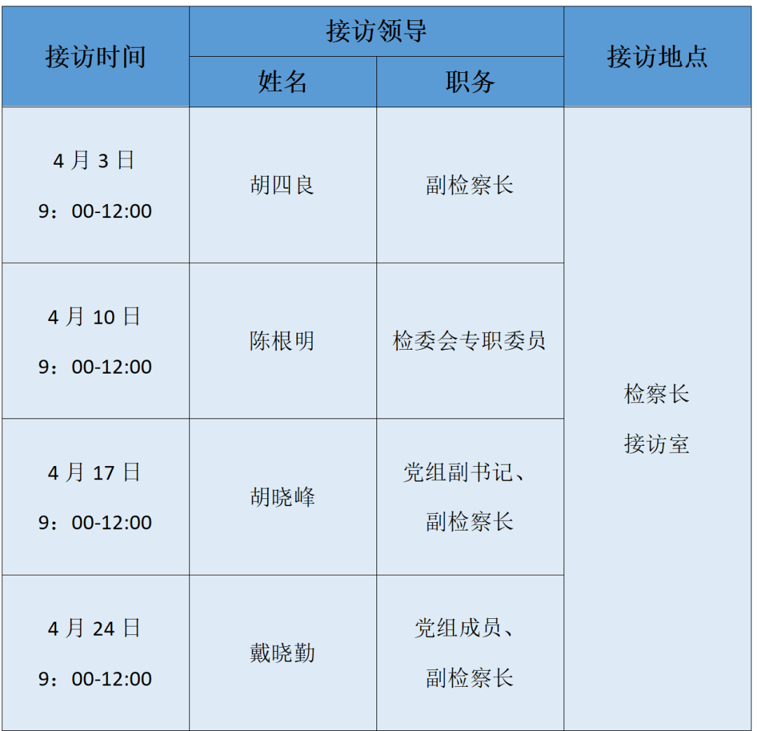 检察长接访活动安排