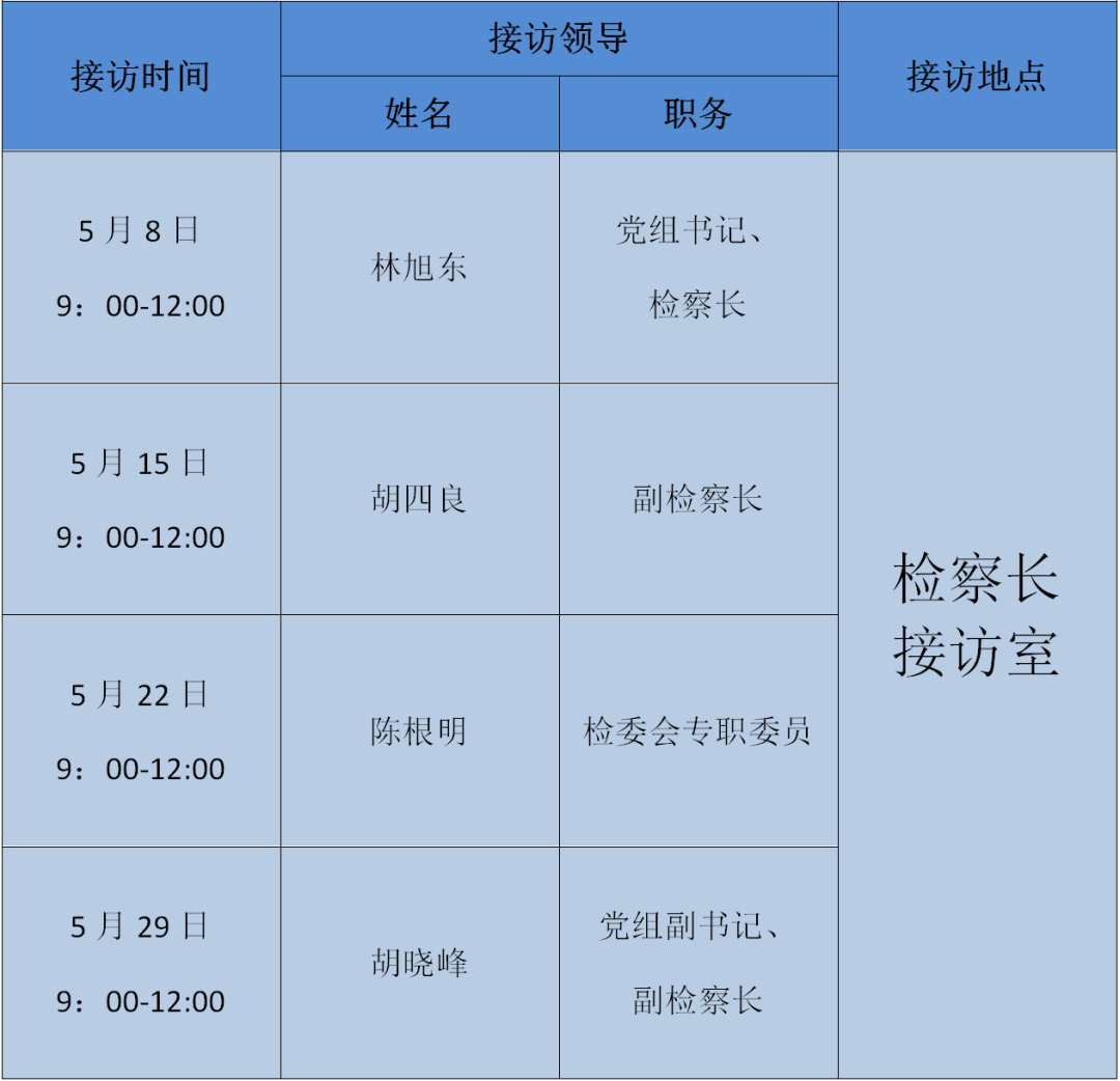 【控申检察为民办实事】安义县人民检察院“检察长接访日”5月接访安排公告