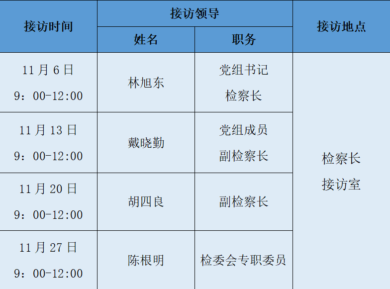 【控申检察为民办实事】安义县人民检察院“检察长接访日”11月接访安排公告