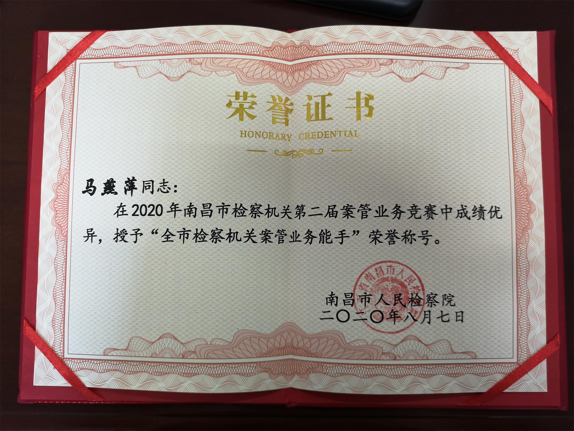 马燕萍同志获“全市检察机关案管业务能手”荣誉称号